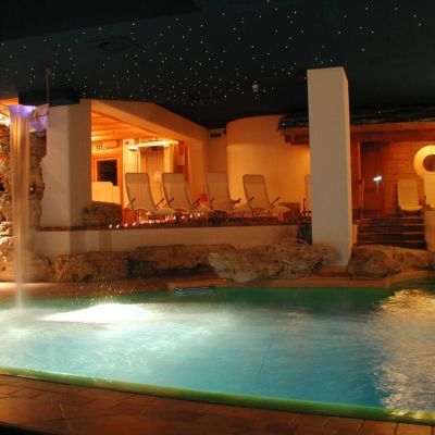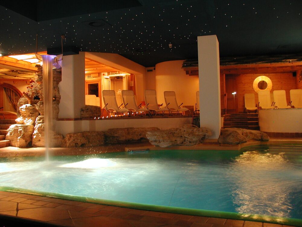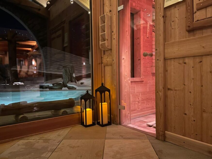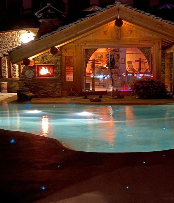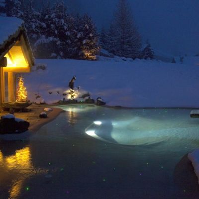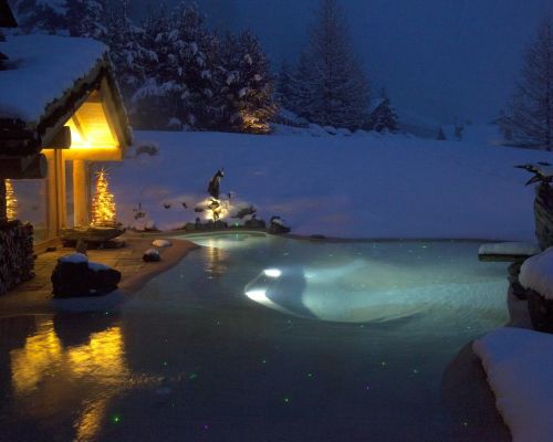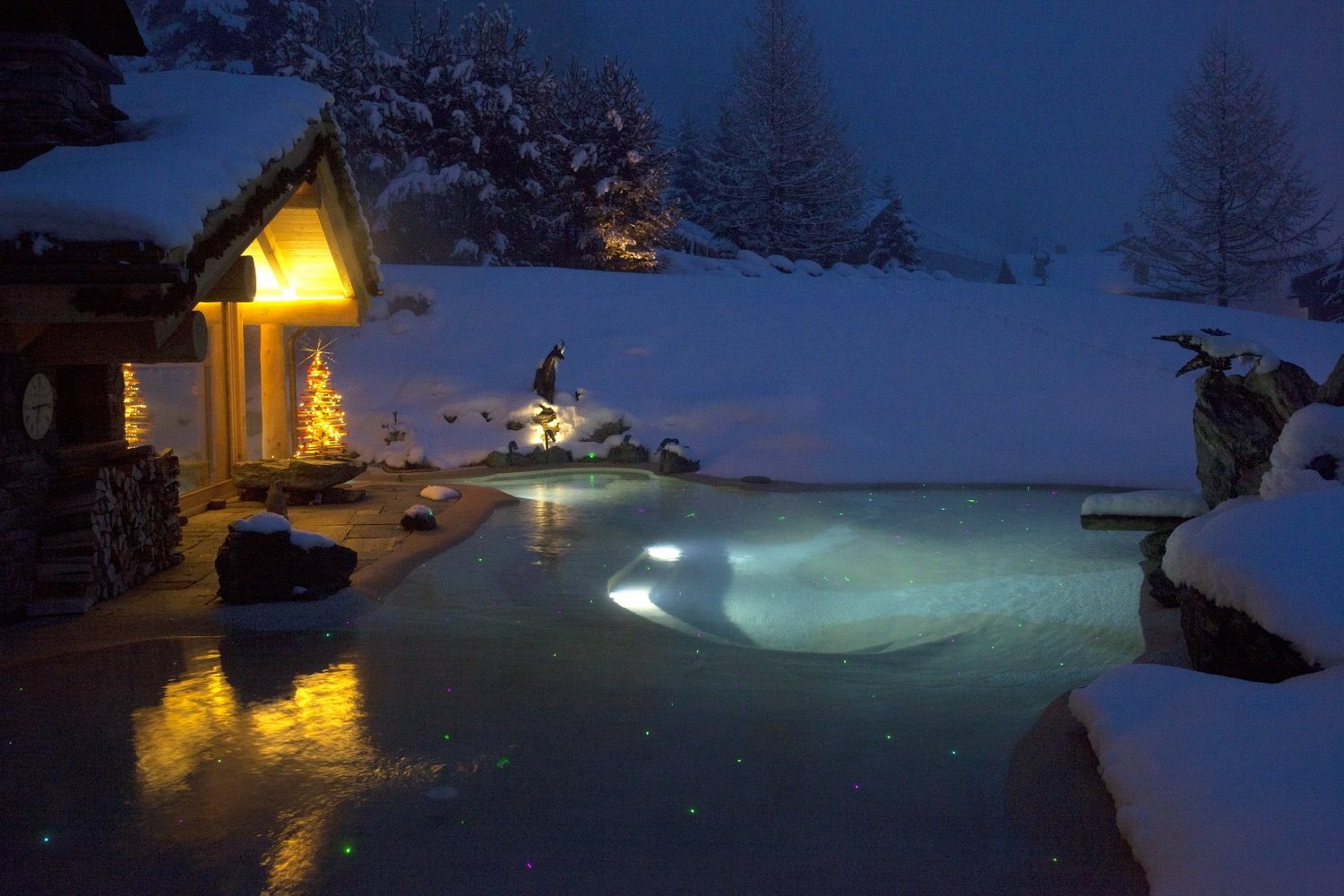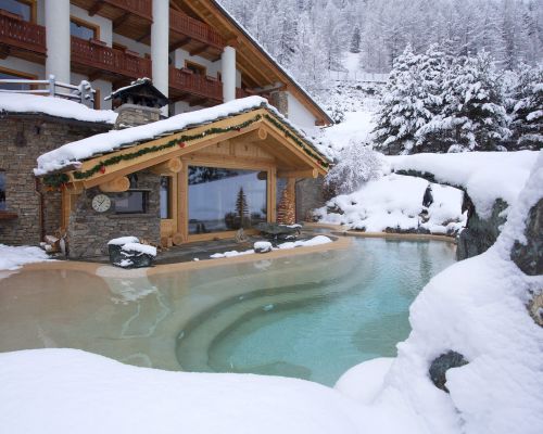 - Ingresso al centro benessere con laghetto alpino esterno riscaldato da fonti rinnovabili